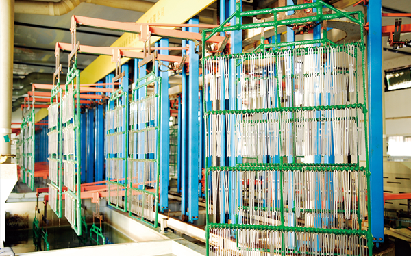 公司現(xiàn)有固定資產(chǎn)6000余萬元,員工300余人,現(xiàn)具有年產(chǎn)噴氣異型筘12萬米,劍桿筘32萬米,噴水筘5萬米,綜框20萬片,鋼片綜2億片,停經(jīng)片1.5億片, 織軸1.2萬套的生產(chǎn)能力。公司“越泉”商標被評為“中國馳名商標”。公司通過ISO9001 :2015國際質量體系認證,ISO14001:2015國際環(huán)境管理體系認證,ISO45001:2018國際職業(yè)健康安全管理體系認證,噴氣織機用鋼筘和織機用鋁合金綜框獲得“浙江制造”品牌認證,公司擁有自營進出口權,產(chǎn)品暢銷全國并遠銷印度、巴基斯坦、土耳其、埃及、哥倫比亞、意大利等國家和地區(qū)。